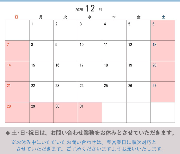 ■ 土・日・祝日は、メールやフォームのお問い合わせのお返事は、翌営業日となります。