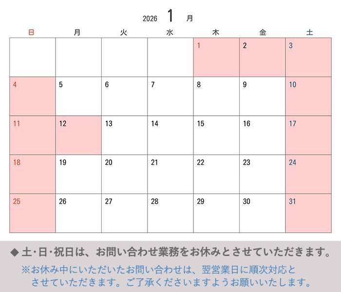 ■ 土・日・祝日は、メールやフォームのお問い合わせのお返事は、翌営業日となります。
