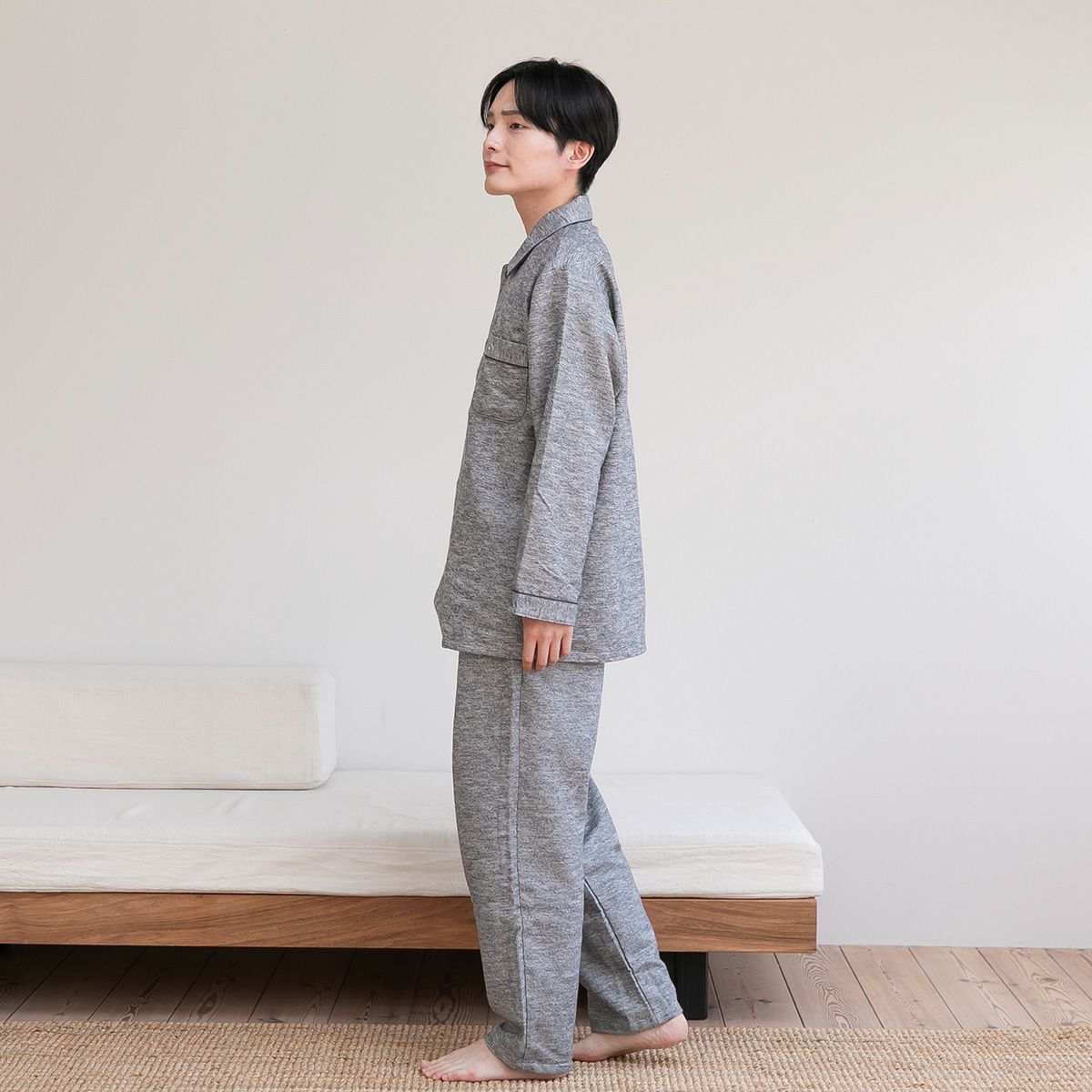 天然繊維・綿100%だからこそ叶う、肌へのやさしさと安心感。冬の心地よい眠りを支える一着です。