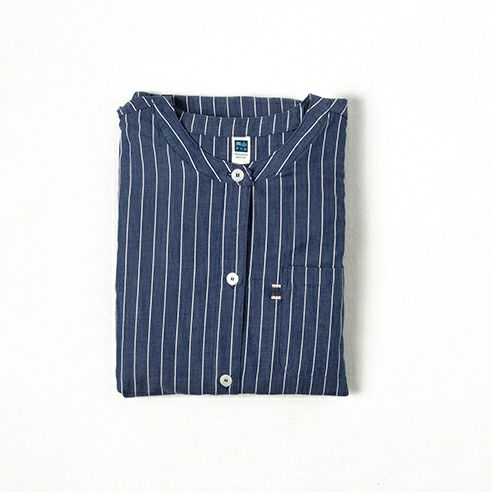 レディース|岡山デニム ストライプ柄 衿なし 全開 長袖 パジャマ