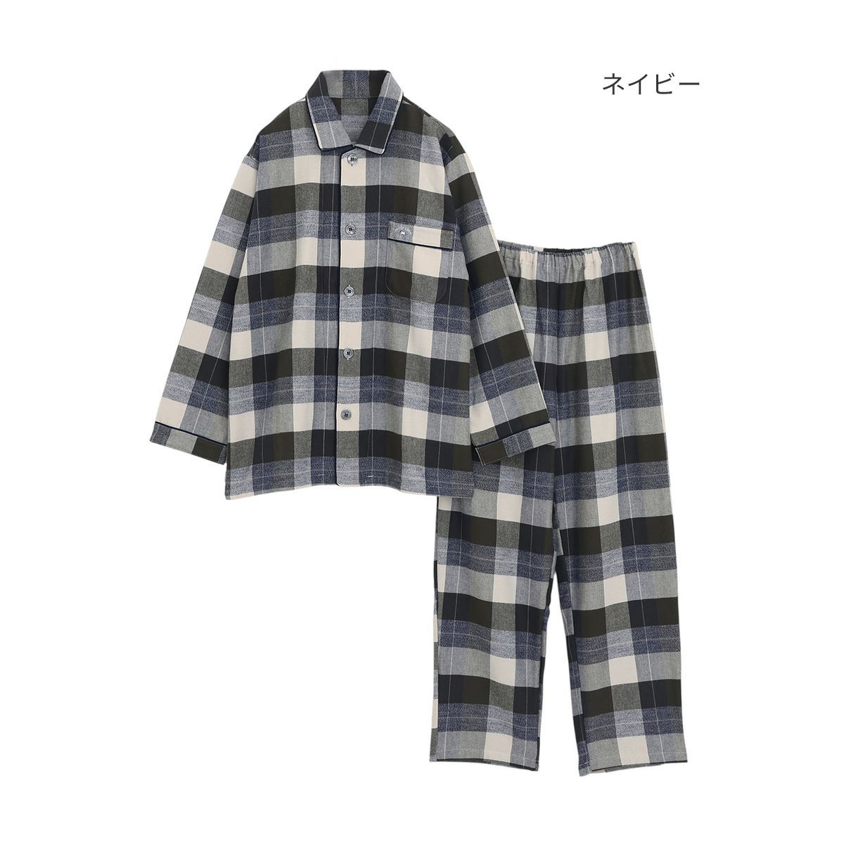 軽くてあたたかい、上質カシミヤ入りの紳士用パジャマ。 繊細なカシミヤ繊維が空気をたっぷりと含み、薄手でもしっかりとした保温性を発揮します。 繊維内部の水分保持力が高く、保湿性・調湿性に優れているため、汗をかいてもムレにくく快適な着心地をキープ。 カシミヤ特有の光沢とやわらかさが上品な印象を与えます。 紳士モデルはゆとりあるシルエットながらも、だらしなく見えないスマートなラインを追求。 肩線を前寄りにすることで、寝返り時の肩のつっぱりを軽減し、自然な姿勢を保てる快適な設計です。 また、ゴム取替口にアクセントカラー糸を使用し、視認性とデザイン性を両立。 肌に直接触れる部分には転写プリントネームとウーリー糸を使用し、肌当たりをやさしく仕上げています。 ソフティーゴムは中折れしにくく、締め付けすぎない快適なフィット感で、一晩中リラックスした状態を保ちます。 上品さと快適さを兼ね備えた贅沢なカシミヤ入りパジャマです。
