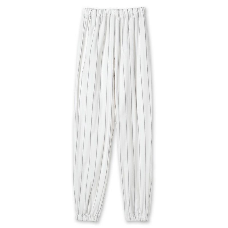 ・ パンツ裾にゴムが入ってて足首で止まるので、長い丈でも床につかずに安心。