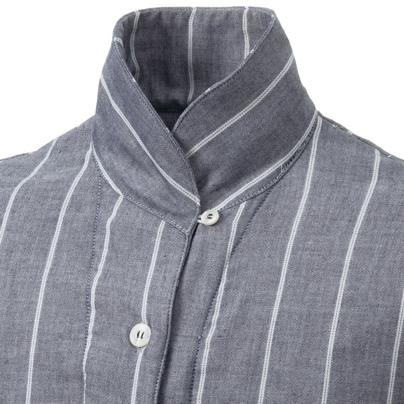 前ボタン全開、首元あったか仕様(ルーパー釦付)、両脇シームポケット、袖口ゴム入り、12分袖 |