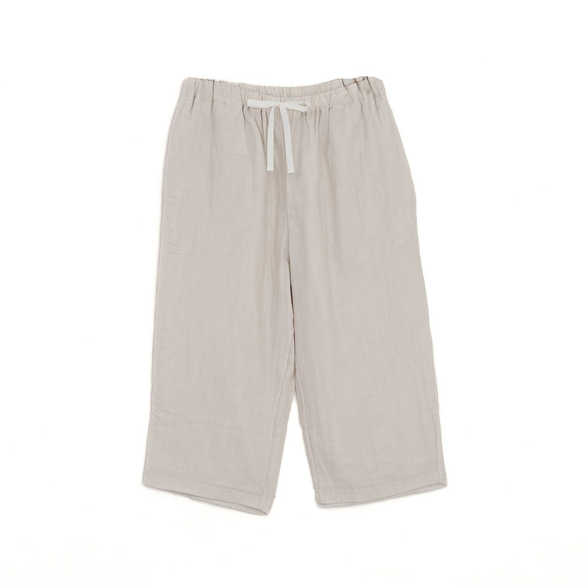 雲ごこちガーゼ 丸首全開半袖+7分丈パンツ 軽やかで涼しく、動きやすく、夏の夜に寄り添う一着。 やわらかくしなやかな3重ガーゼ素材を、より涼やかに楽しめる半袖&7分丈パンツデザインに仕立てました。 首まわりはすっきりとした丸首、前開き全開タイプで着脱もスムーズ。ボトムスは足元にほどよい抜け感のある7分丈仕様で、蒸し暑い季節にも快適です。