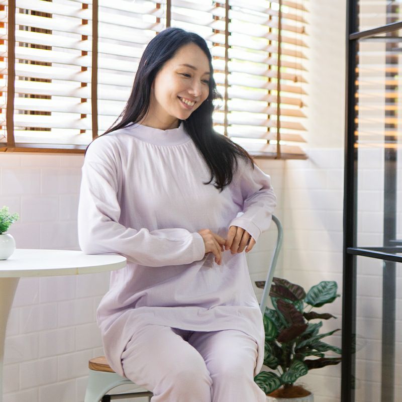 軽くてやわらかな肌にやさしいニットガーゼ(接結天竺)素材を合わせた、冬におすすめのパジャマ。