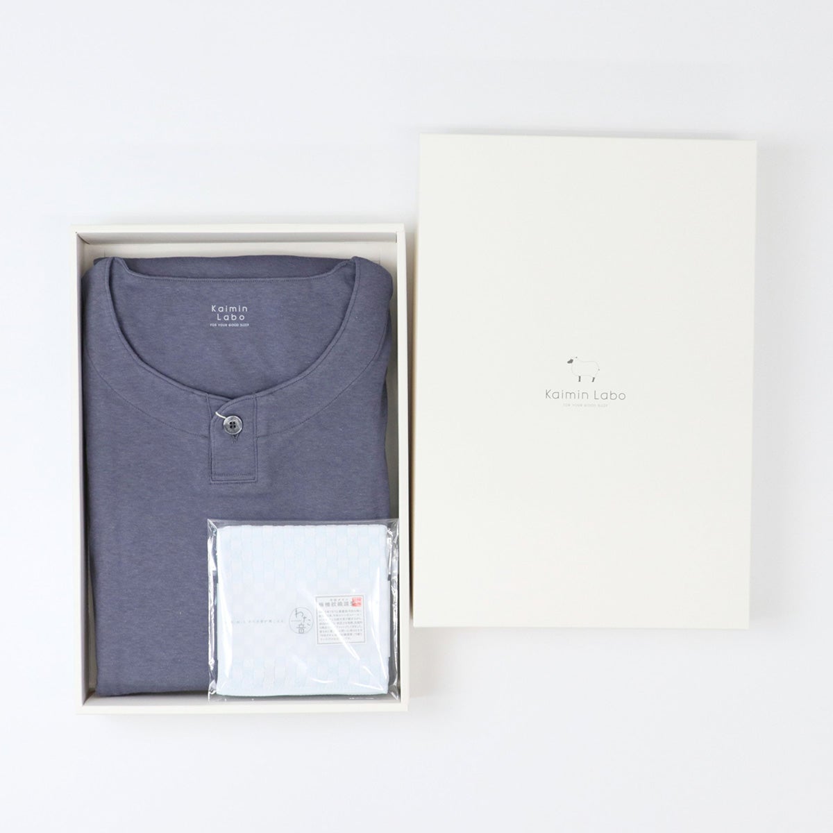 メンズ|肌面綿シルクニットガーゼ ギフトセット 今治タオル わた音ミニハンカチ付き