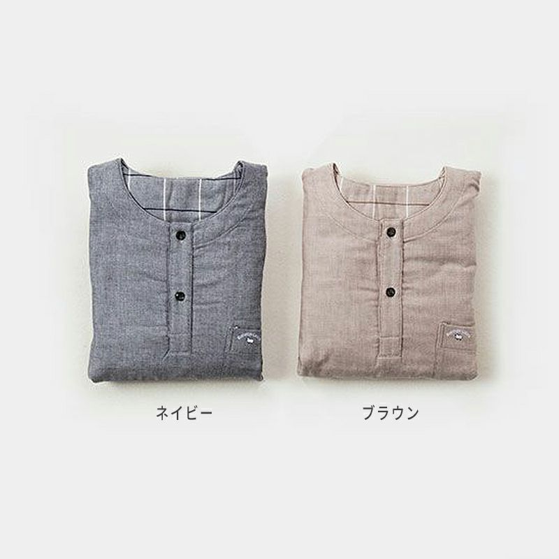 【メンズ】ストレッチ雲ごこちガーゼ起毛 3重ガーゼ 無地 長袖 かぶり パジャマ