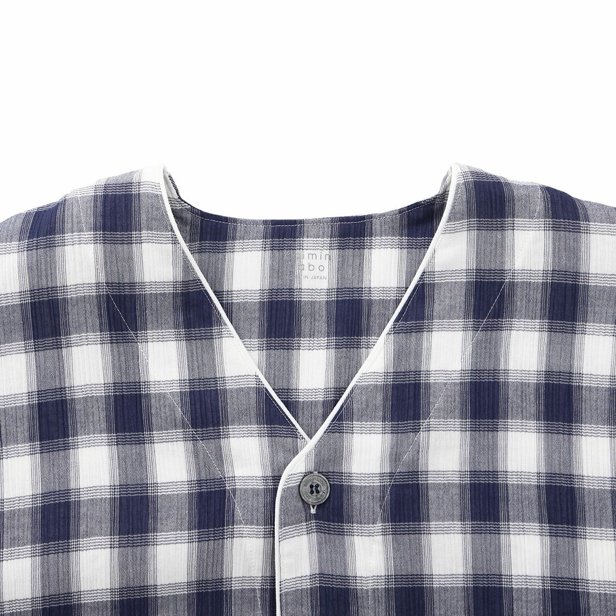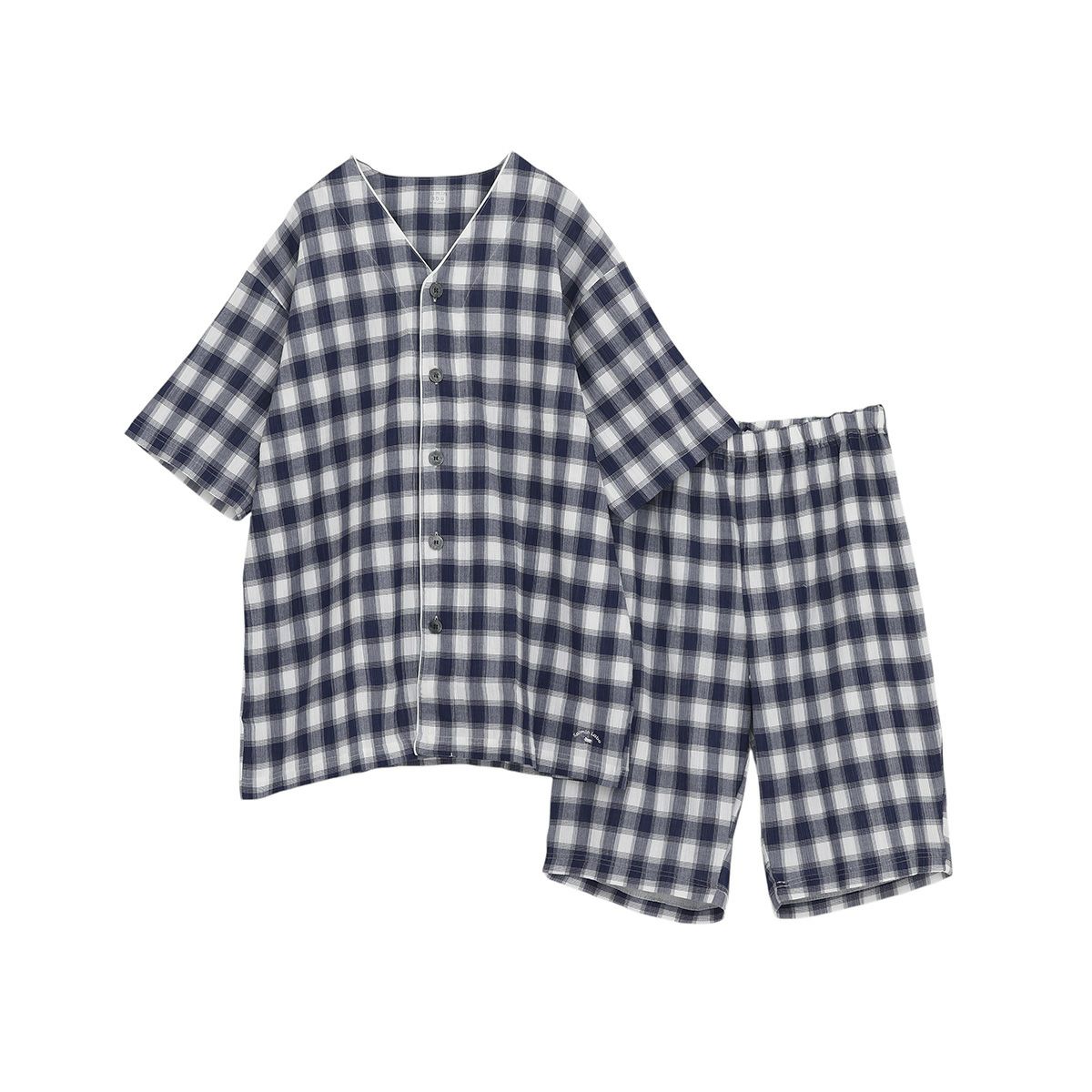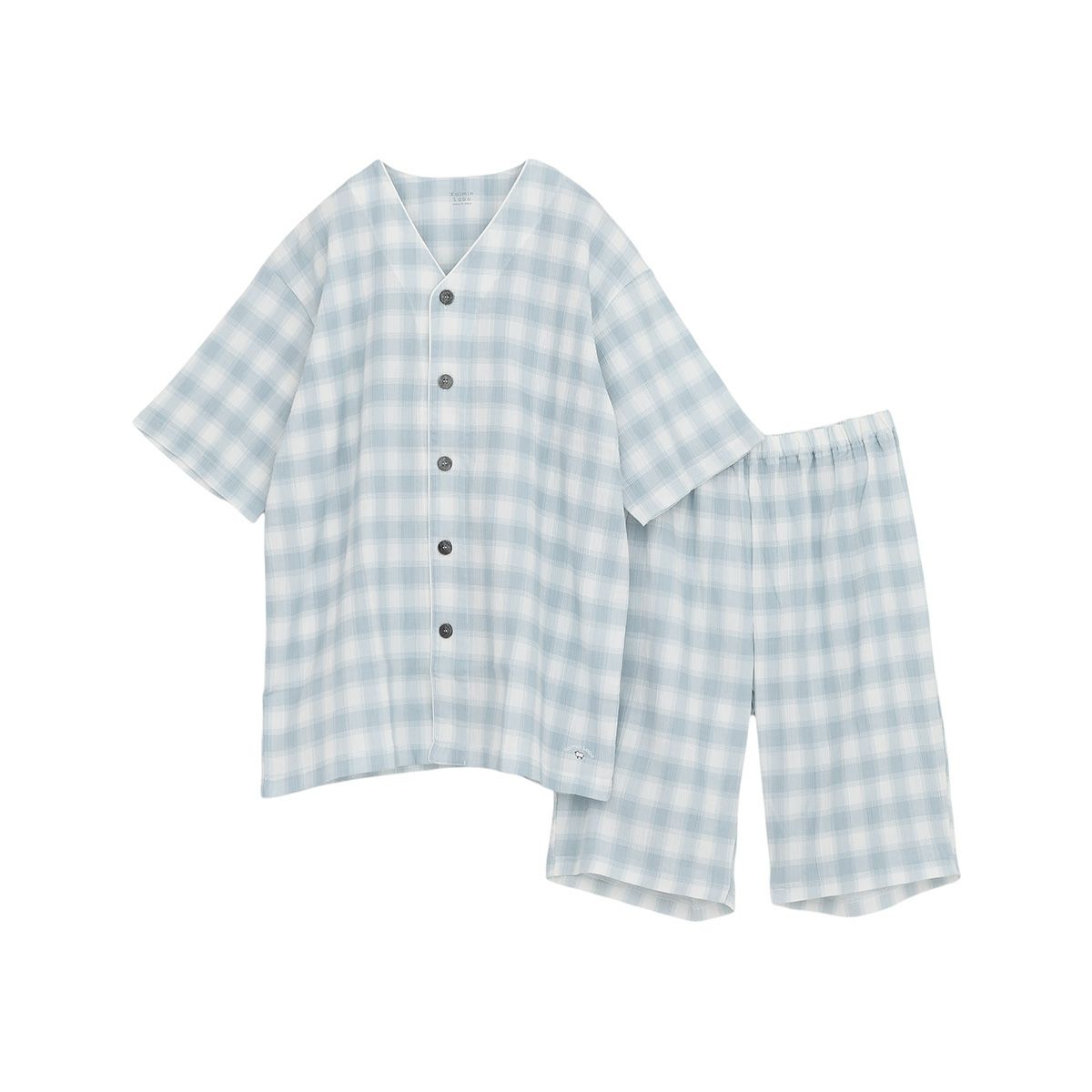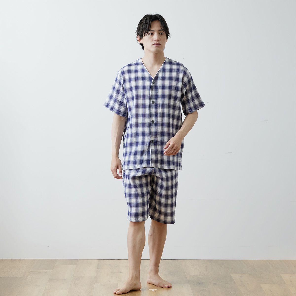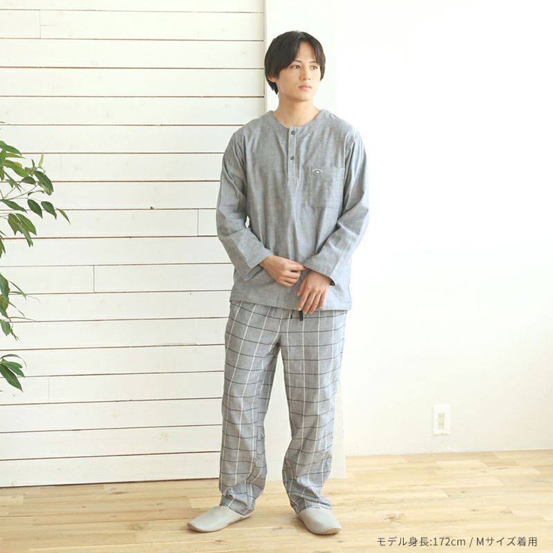 【メンズ】柔コットンカルゼ 無撚糸起毛 格子柄 長袖 パジャマ